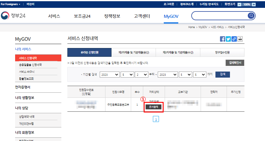 아래 주민등록등본(초본) 을 클릭해 줍니다.