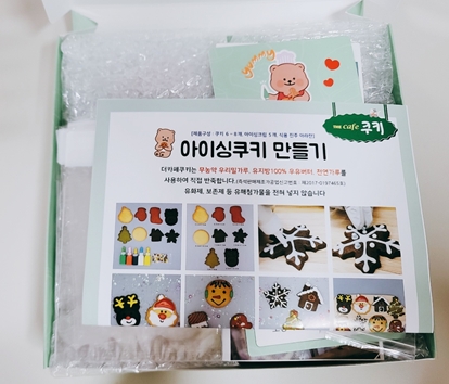 유통기한을 늘리기 위한 보존제, 방부제, 색소유화제 등을 전혀 사용하지 않아 쿠키는 30일 안에 섭취해 달라고 요청하였다. 나는 크리스마스 아이싱쿠키만들기 로 주문하였지만, 일반 쿠키만들기세트도 주문하여 시각, 미각, 후각, 촉감 등 오감을 자극하는 놀이도 해 볼까 한다.