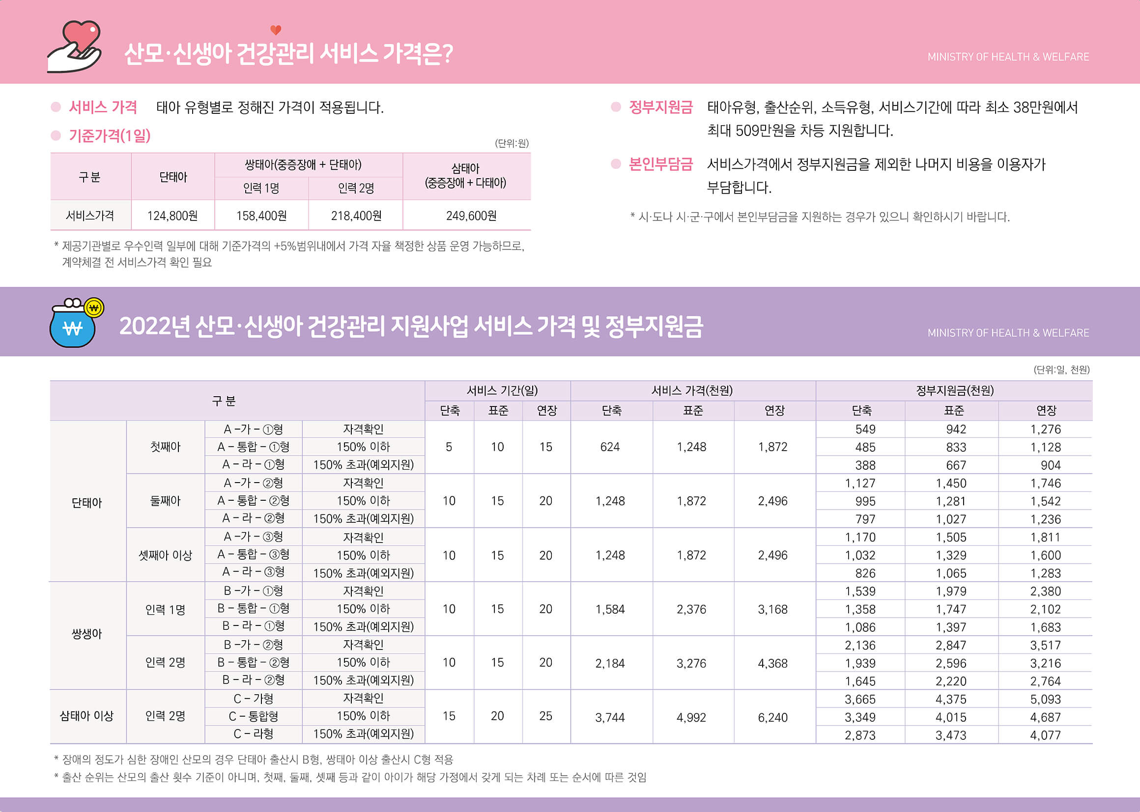 단태아, 쌍생아 등 따라 지원이 다르다.