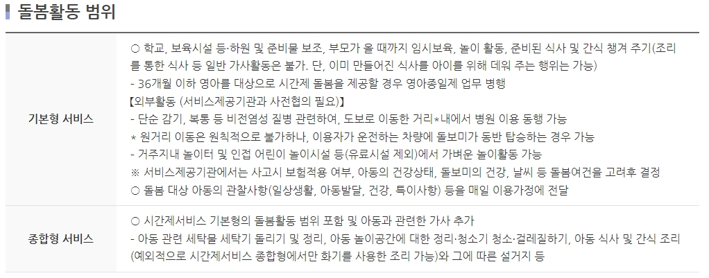 돌봄에 필요한 전반적인 업무를 모두 담당한다.